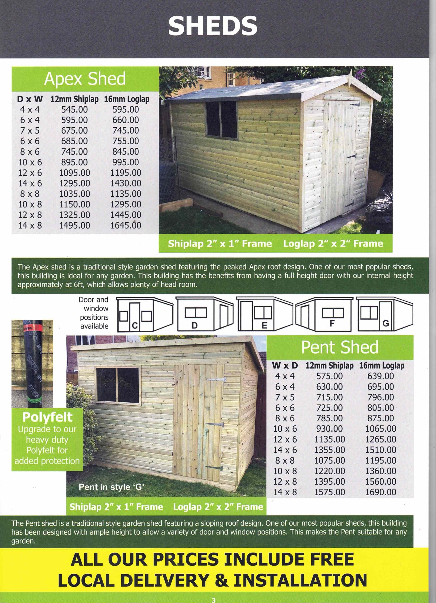 Advertised Pent Buildings are the width x depth eg. 7Γ5 = 7β² Wide x 5β² Deep