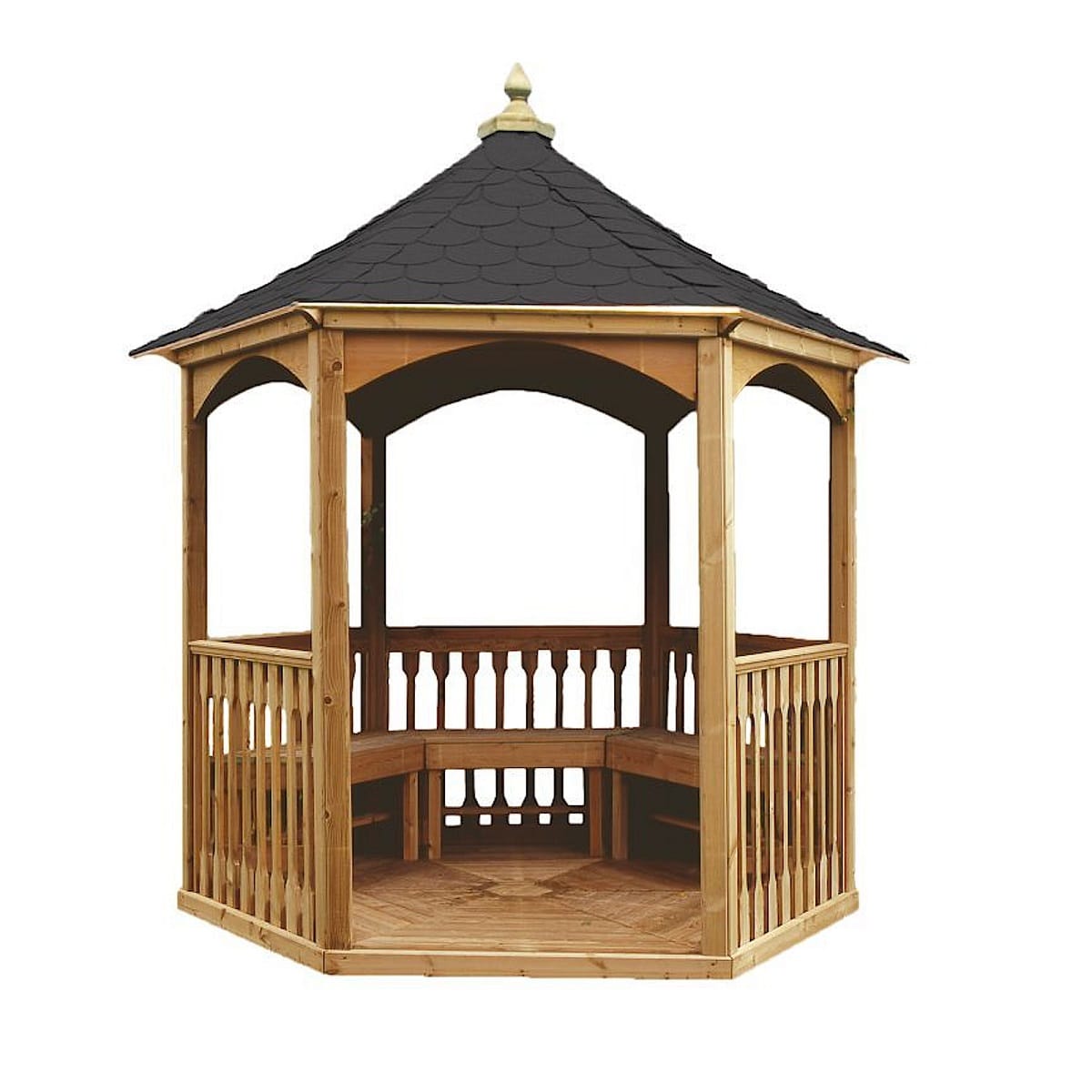 The floor and benches can be purchased separately along with different roof options.