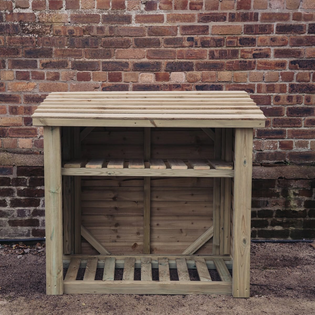This 4FT x 4FT Log Store with is built to last with a traditional sturdy design that offers storage space for logs and a handy kindling shelf.